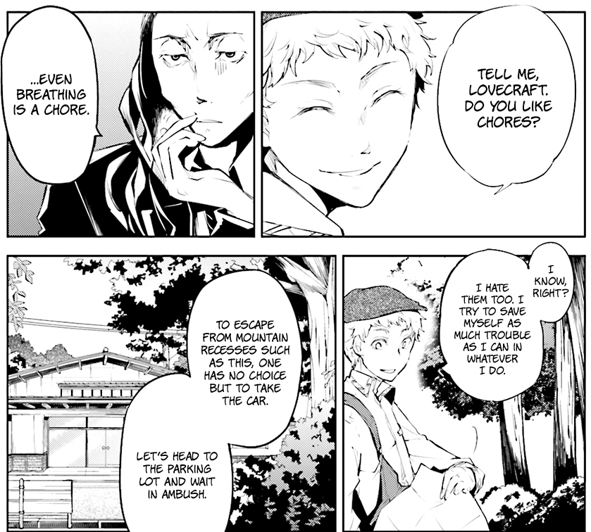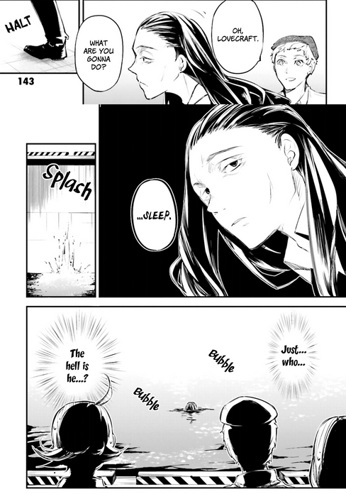 (December freebie) [MEMORY] He stands at the edge of a pier. (UNKNOWN) asks him "Lovecraft, what are you going to do now?". He turns his head, answers "sleep", and then jumps into the water. (THREAD)
